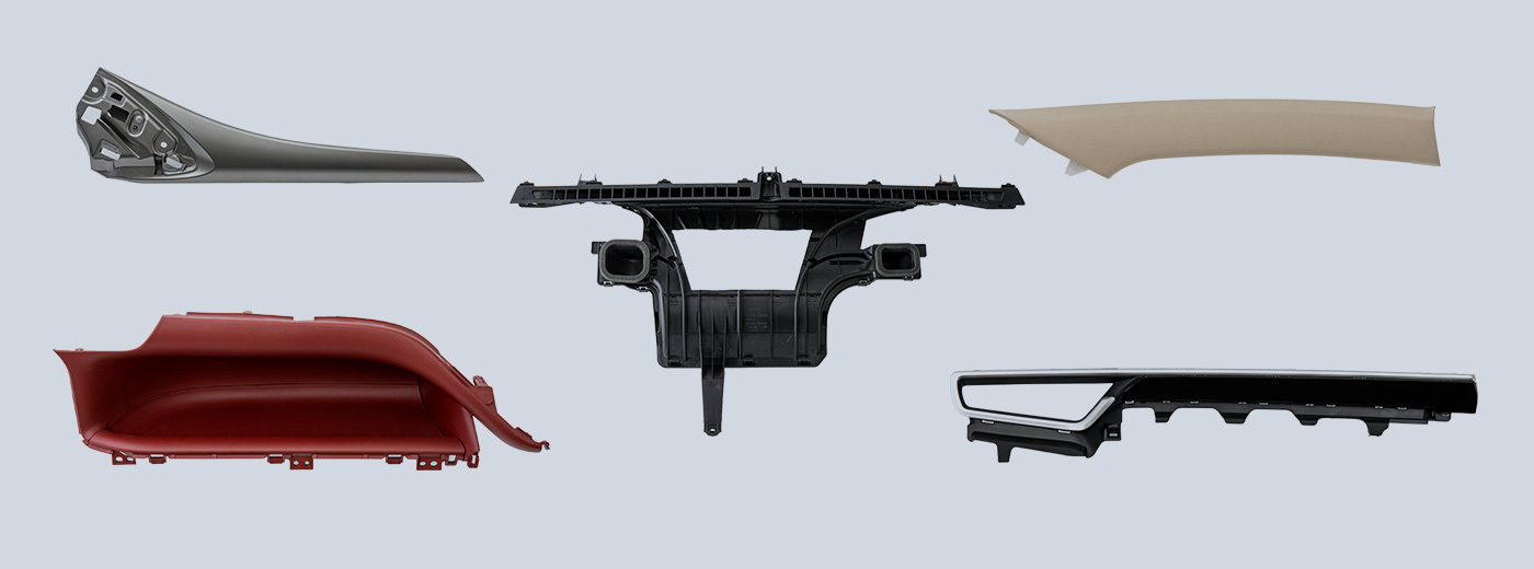 運転席、助手席の空調用吹き出し口部のパネルです。風向き制御機能とデザイン性を考慮して、さまざまな加飾が施されます。