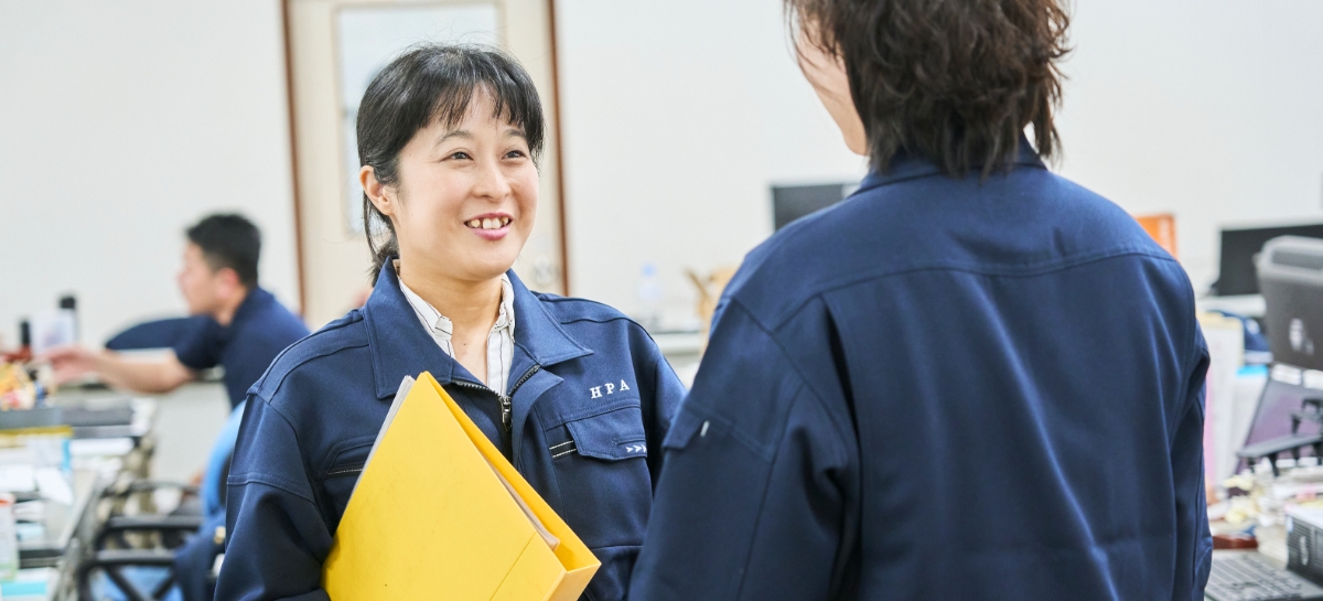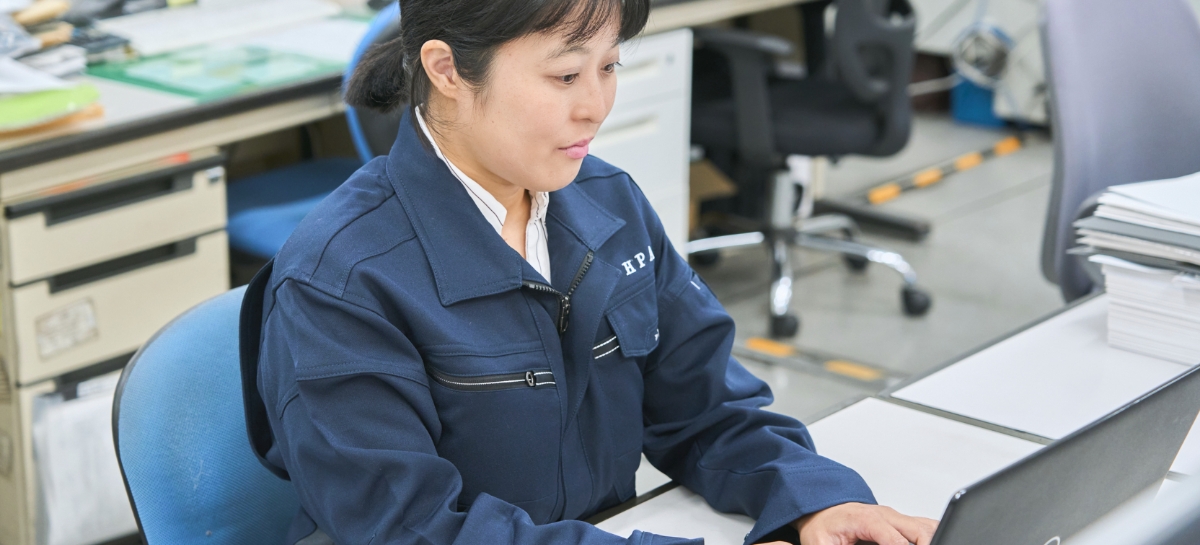 総務の仕事は人事業務・経理業務等があります。直接生産業務には関与してませんが、日常使用する消耗品の手配や支度を通して生産業務のサポートをしています。また、従業員の皆様が働きやすい環境を維持していきます。
